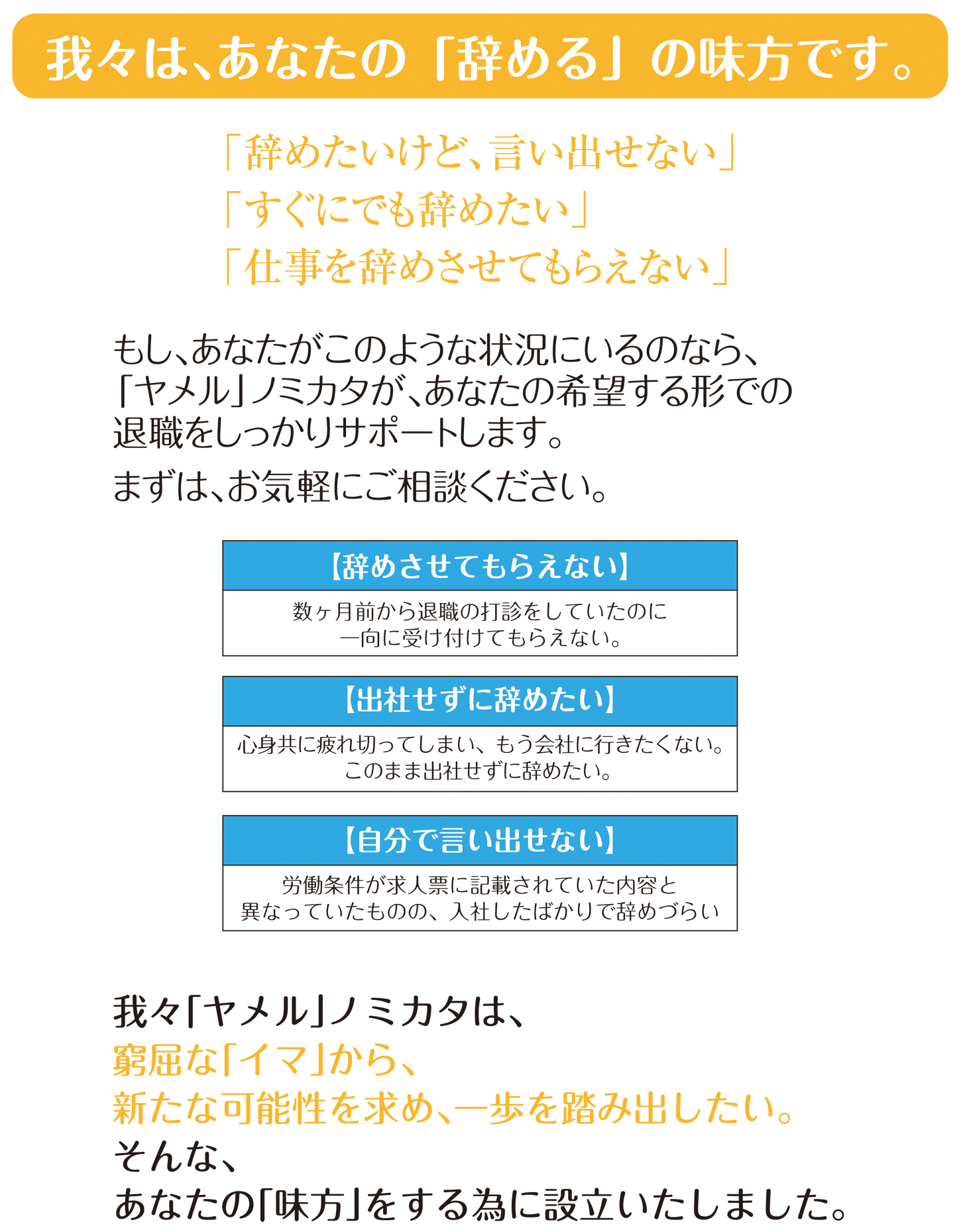 「ヤメル」ノミカタのサイト内には、事例紹介を一切掲示しておりません